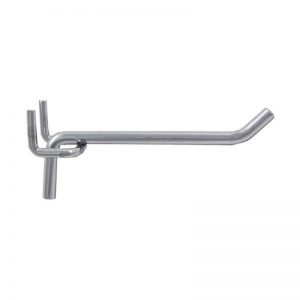 Gancho exhibidor de 8″ plg. » tablero agujeros. Mercancía se cuelga del estos elegantes estantes. Ganchos maximizar el espacio y facilidad de uso. Metal niquelado