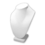 Exhibidor de collar de cuero sintético blanco que mejorará sus joyas en su escaparate dándole un toque de elegancia y versatilidad. Tamaño: L: 5.00 ∗ W: 4.00 ∗ H: 7.25 pulgadas. Material: cuero sintético.
