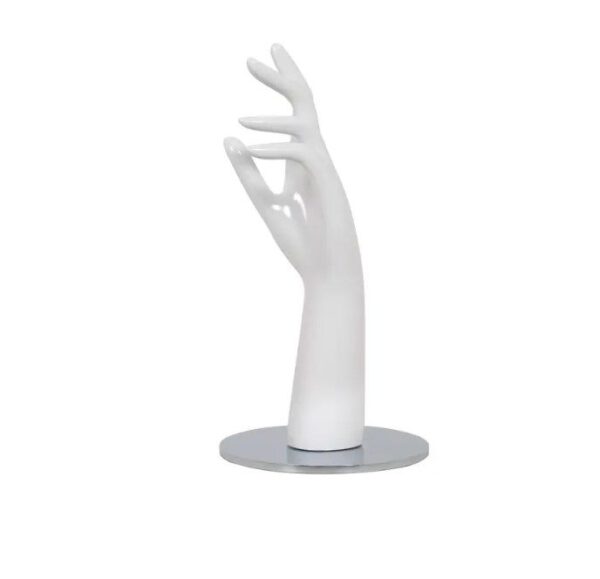 Mano de exhibición de accesorios femenina de 12" de alto con base cromada redonda de 6-1/4" de diámetro.